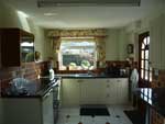 A semi-glazed door from the hallway, a large window over the rear garden and a semi glazed back door all help make the room light and friendly. This fitted kitchen has a stainless steel sink with 1½ bowls and integral drainer fitted into a marble effect laminate work surface with fitted cupboards and drawers beneath it. There are also a number of wall cupboards and a built in storage cupboard with some shelving and coat hooks. A modern electric cooker and fridge are included in the sale. The floor consists of white ceramic tiles with diamond shaped insets of brown and white and the walls are partially tiled along the main work surfaces and sink area. The kitchen also has a central ceiling light, radiator and a telephone point. |